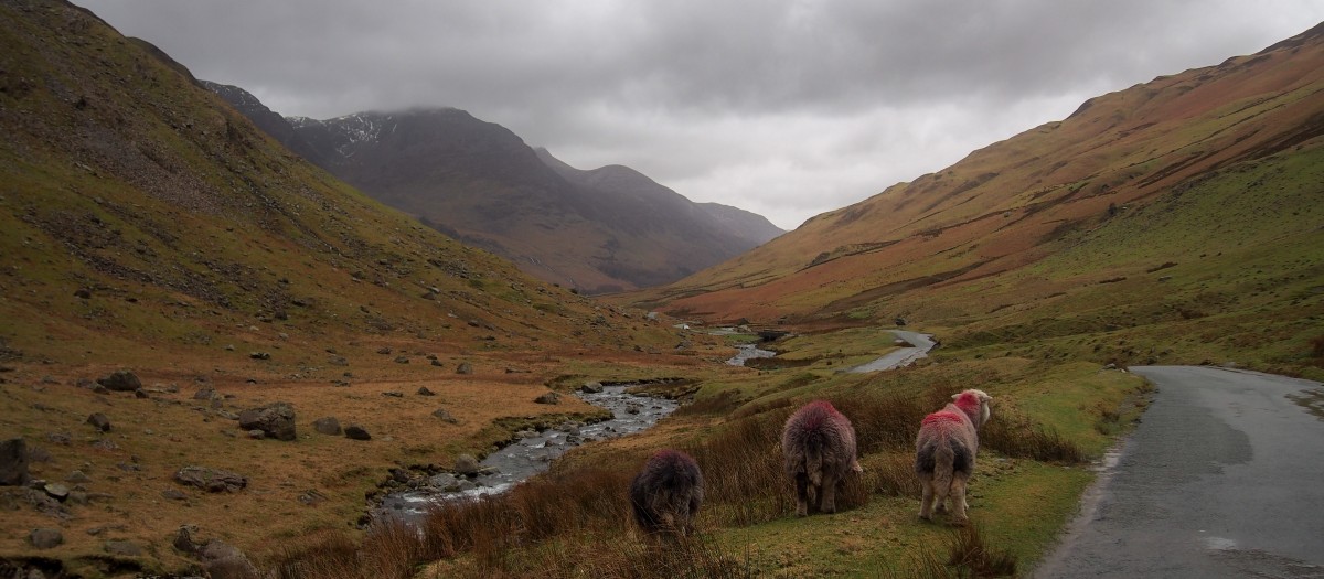 Racing against the brewing rain clouds, we drove through Keswick towards Borrowdale valley. We began the rollercoaster incline to the famous Honister slate mine, stopping only for a hot drink and to admire the views and slate works. Continuing on down the steep Honister mountain pass, I was in awe of the dramatic landscape and its similarity to that of the Scottish Highlands. We drove in parallel to Buttermere Lake, dodging the resident sheep and anticipating the impending downpour. The landscape was soon draped beneath a cloak of mist; we’d had our ration of winter scenery for one day.