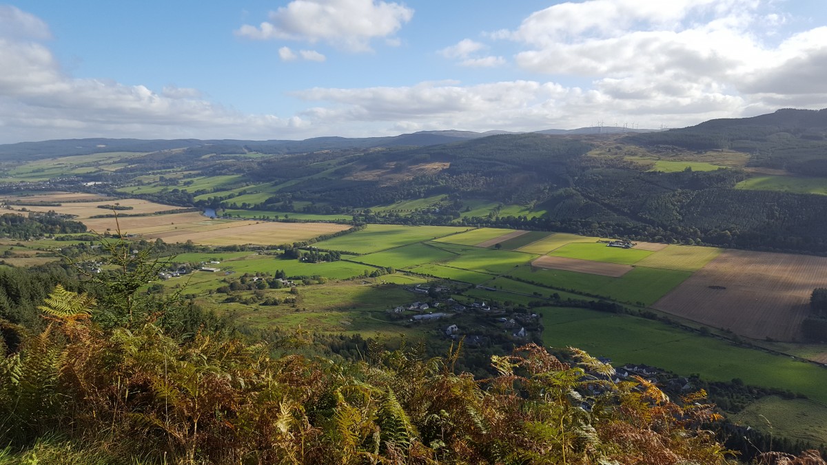 The Discovery climbed up into Forestry Commission land, Colin explaining the complex forest management system and the efforts taken over the past thirty years to thin the trees making a more natural habitat for the wildlife in the area. We stopped at the view point – we were being followed that day by Visit Scotland who, sensibly, are keen to show tourists what they can expect from a trip to Perthshire – and almost 1100 feet up, the views from the top of our earlier walk paled into perspective as we gazed for miles out into the patchwork fields and hillsides before us.