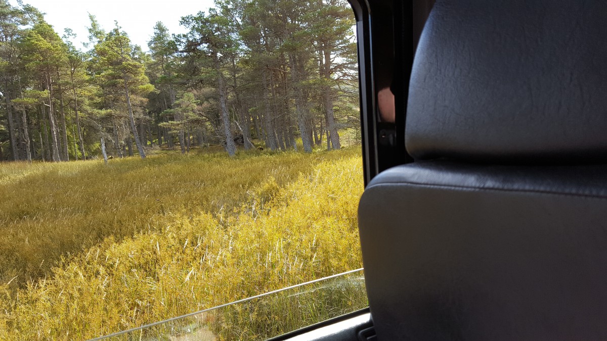 We were joined by a couple from Wishaw for the Forest Safari, into the Landrover and out the centre gate. Colin talked about the environment, going back millennia to the ice age and pointing out signs of glaciers and how they would have moved through the land, slowly carving out the valleys and hillsides of what would become Highland Perthshire.