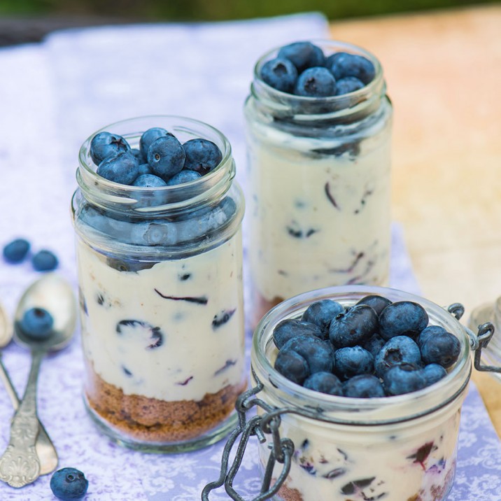 These delicious blueberry cheesecakes are mini versions of their original big siblings and are just super cute. They are really simple to pull together. You start with the biscuit base - I haven’t added any melted butter to the biscuit base as this would make the base firmer and likely more difficult to eat. So the base is just crushed ginger nut biscuits.