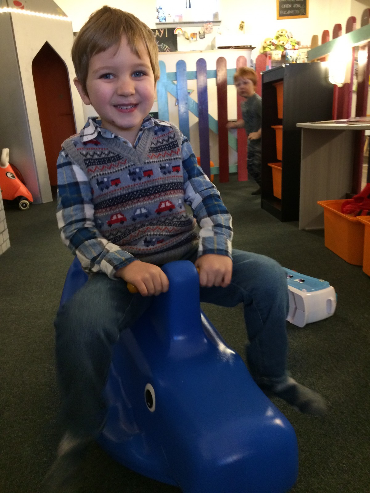 James and his pre-school friends loved the kids’ play area. They were diverted by the ride-on cars, fancy dress, a wooden train track and much more. The play area is unsupervised, and you remain responsible for your child (I believe that’s a lifelong arrangement!) but they can’t get into too much trouble in Café Play. Usually, Claire and I are mid-gossip while Toby tumbles off a high surface and James throws himself against a sharp table edge. But we avoided any such mishaps here.