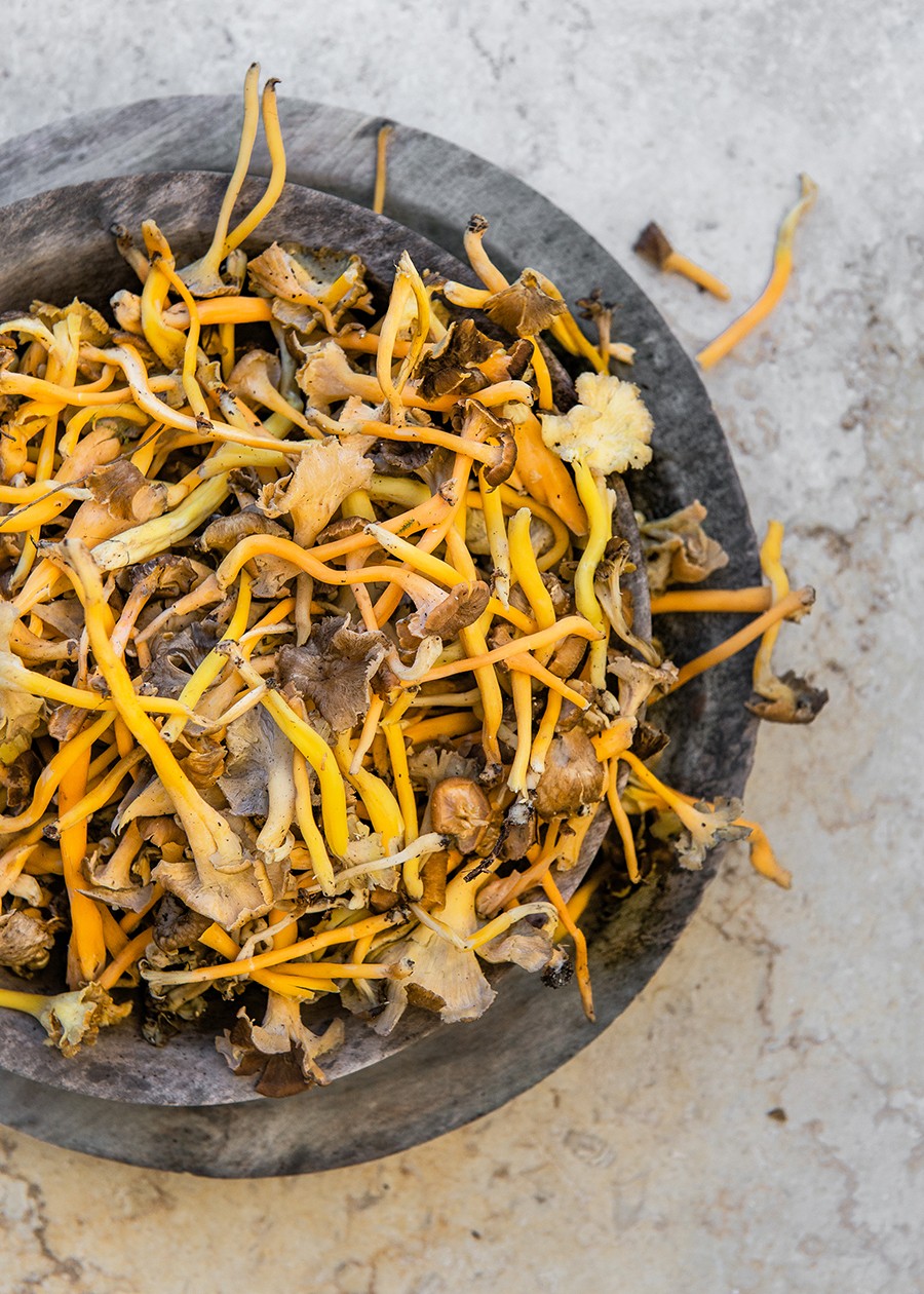 1. Heat the butter and 1tbsp of the olive oil and fry the chanterelle mushrooms. Once cooked set aside.