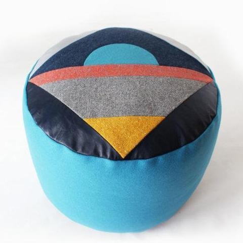 Handmade leather and wool Moonrise Pouf by Fun Makes Good.