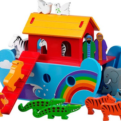 A wooden Noah's Ark set with 18 colourful characters.