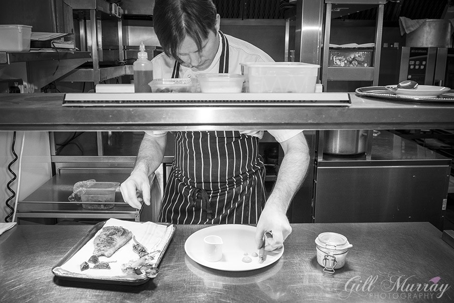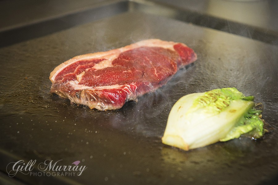 Fabrice, who is also head chef, was busy in the kitchen when I arrived preparing his Dexter Beef Sirloin for our shoot. Fabrice’s kitchen is really inspiring and I listened with interest as he showed me his custom built French stove complete with two plancha hot plates and a hob – very impressive indeed!