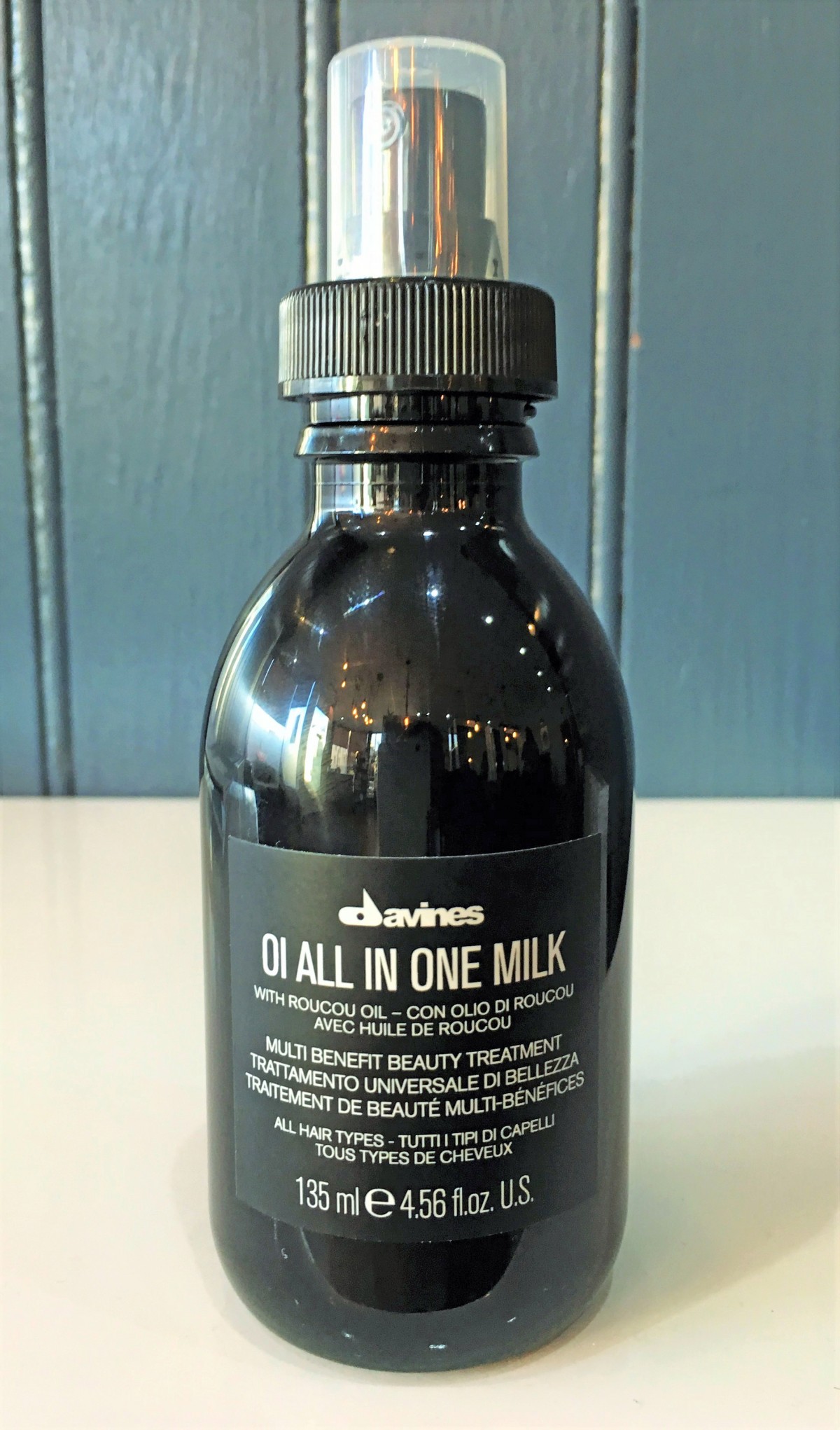The Oi Milk from Davines is our hero product. A leave in conditioner containing roucou oil.