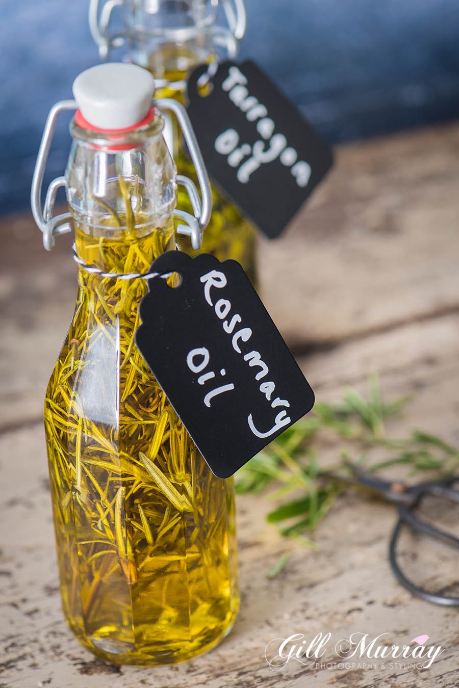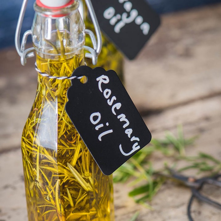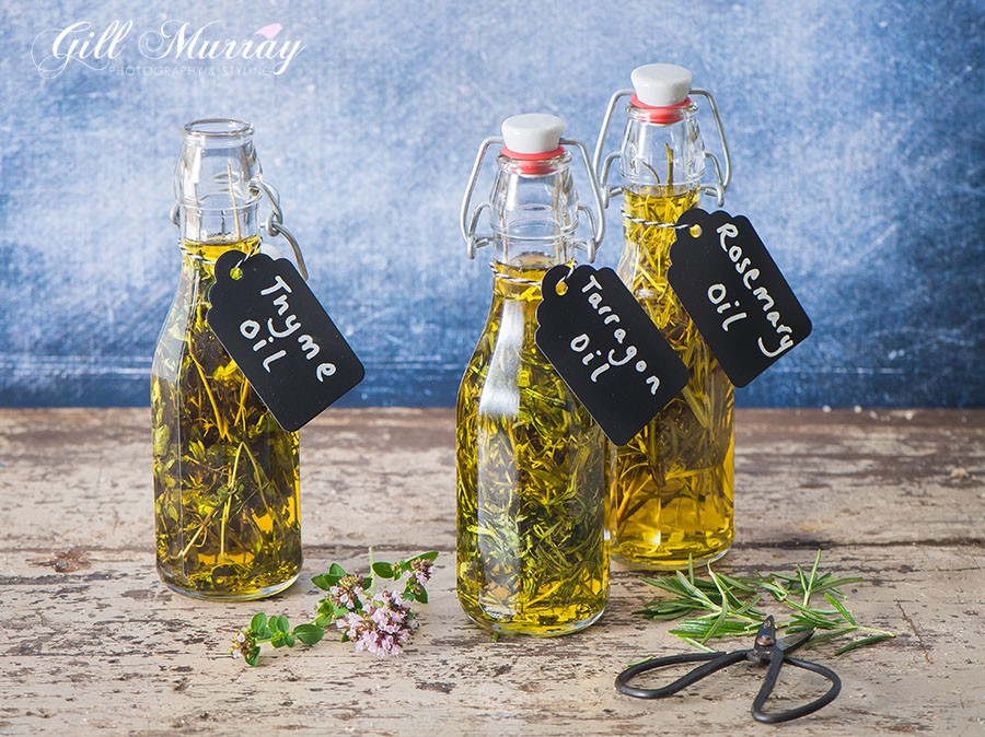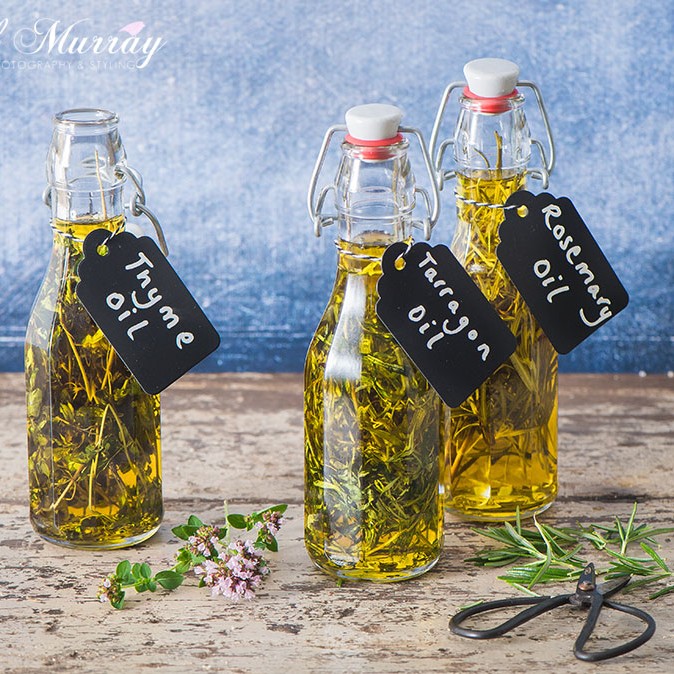 3. Seal your bottles and store in a cool dry place. The oil will soon pick up the flavour of the herbs and will intensify in due course.