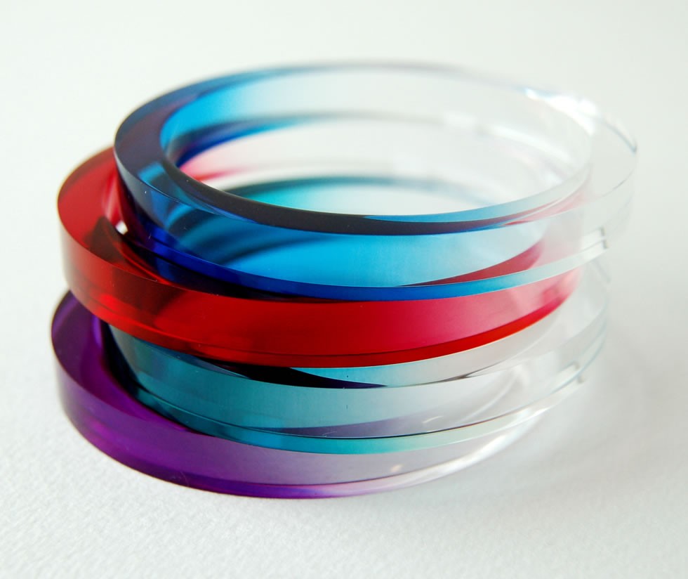 These lovely Acrylic Bangles look stunningly bright and cheery, with 'dipped' effect colouring on clear acrylic.