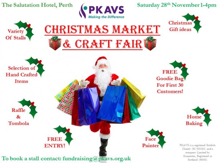 Join PKAVS for their Christmas Market on Saturday 28th November at the Salutation Hotel Perth and do your Christmas shopping in style.