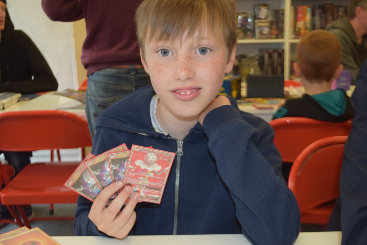 It is at one of these Sunday league meetings, just seven months ago, that aspiring young Pokemon champion, 10-year-old Sam McTeague first got into playing Pokémon TCG competitively. 'My big brother had started playing Magic: The Gathering at Big Dog Books and he mentioned that there was a Pokemon league'. Since then Sam and his dad Garry (also a keen player) have become a duo to be reckoned with at the Sunday meetings gaining a reputation for placing highly, going on to play at the European championship in Berlin where