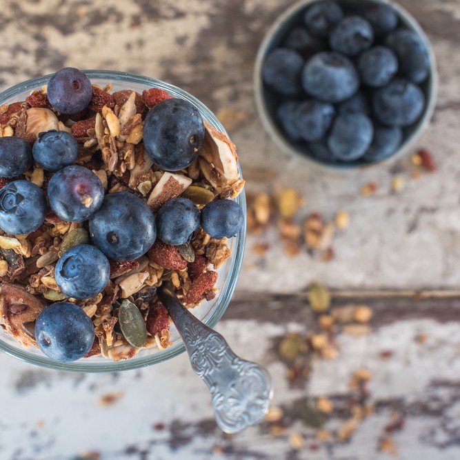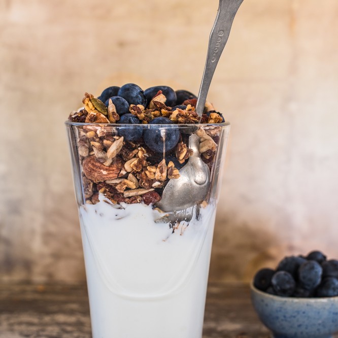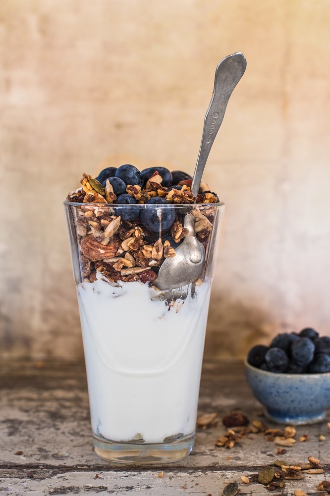 All the facts suggest it's as close to a perfect ingredient as you can get! We particularly love it when it's added into this sweet crunchy homemade granola, mixed with creamy Greek yogurt and topped off with juicy, plump blueberries.