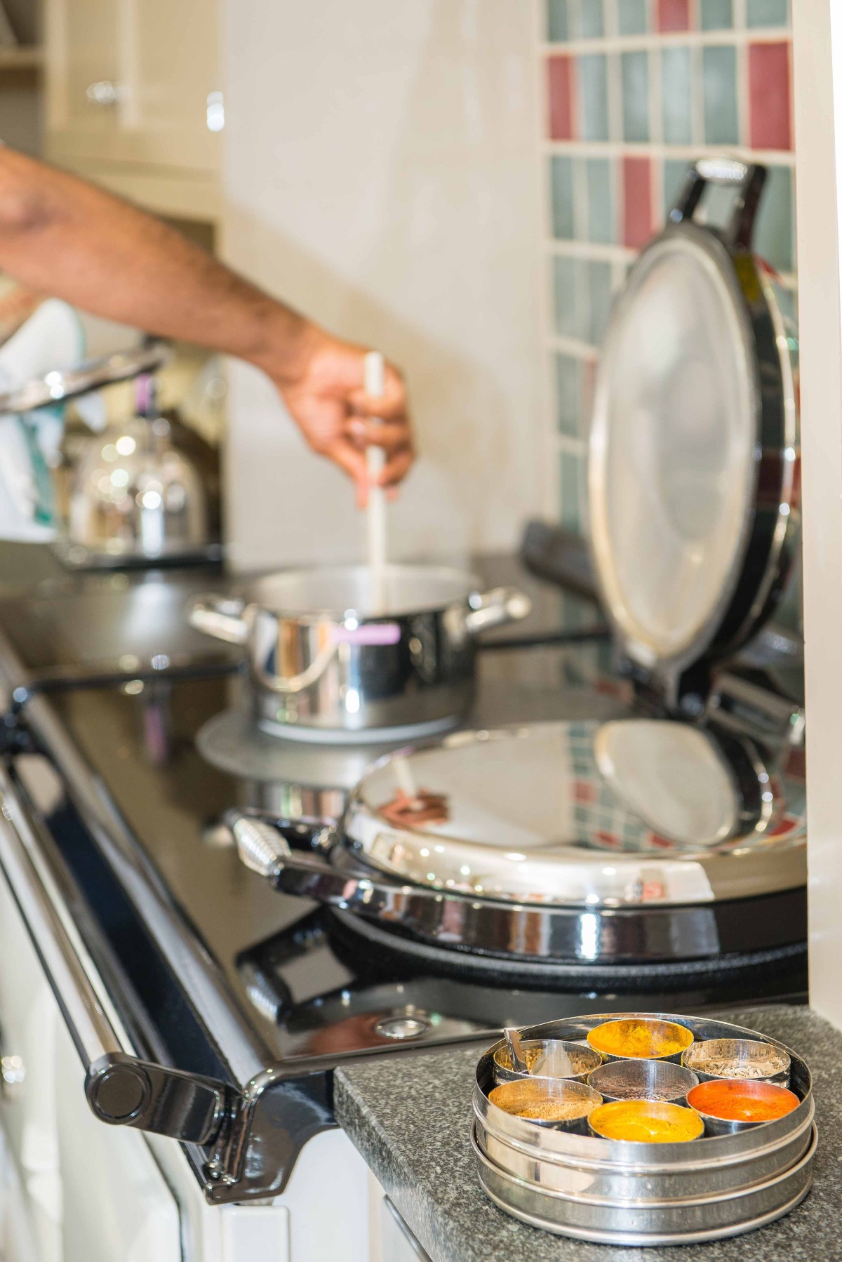You can find out all about the story behind our Small City Recipes, Aga for PKAVS events here on the website, and I delighted to tell you all that the first event on Saturday was a rip-roaring success. Praveen was in his usual story telling mood (do click over and read his full story on the Big Personality section!) and quite apart from showcasing how easy Indian food is on an Aga, his spicebox from the family farm back home in Mattampally in South India had everyone enraptured.