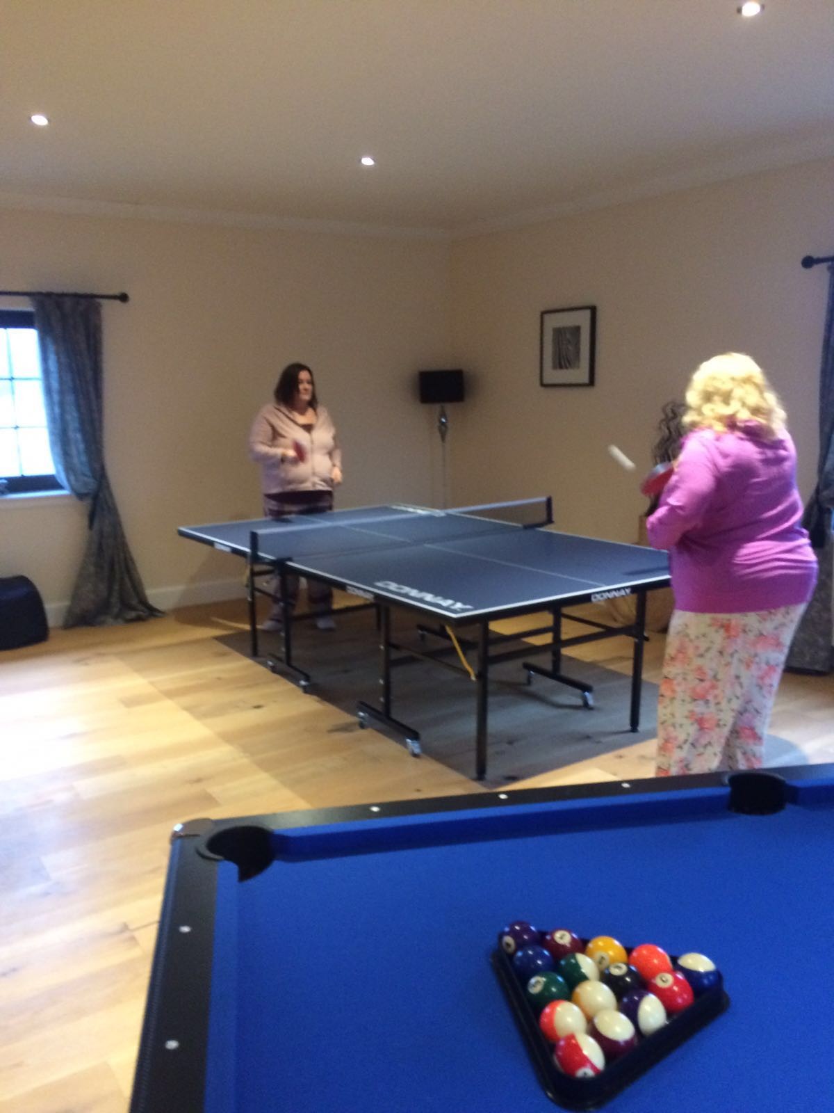 Pool, table tennis, another TV (perfect for game consoles if you have kids with you) and two big comfy sofas which became our viewpoint for the outstanding rally of ping pong led by Judi and Judith.