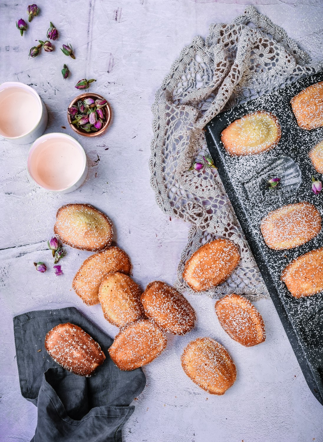 The madeleine or petite madeleine is a traditional small cake from Commercy and Liverdun, two communes of the Lorraine region in northeastern France. Traditionally scallop shaped, you can pick up a madeleine baking tray from most cookware shops.