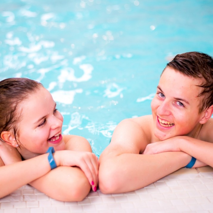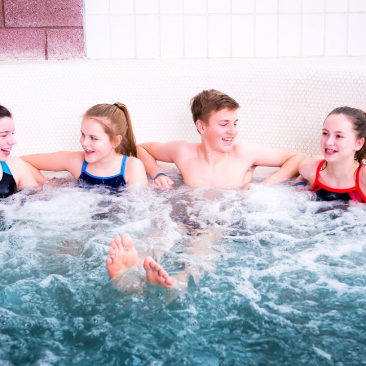 Teenagers having a gossip in the huge Jacuzzi bath at the Leisure Pool.