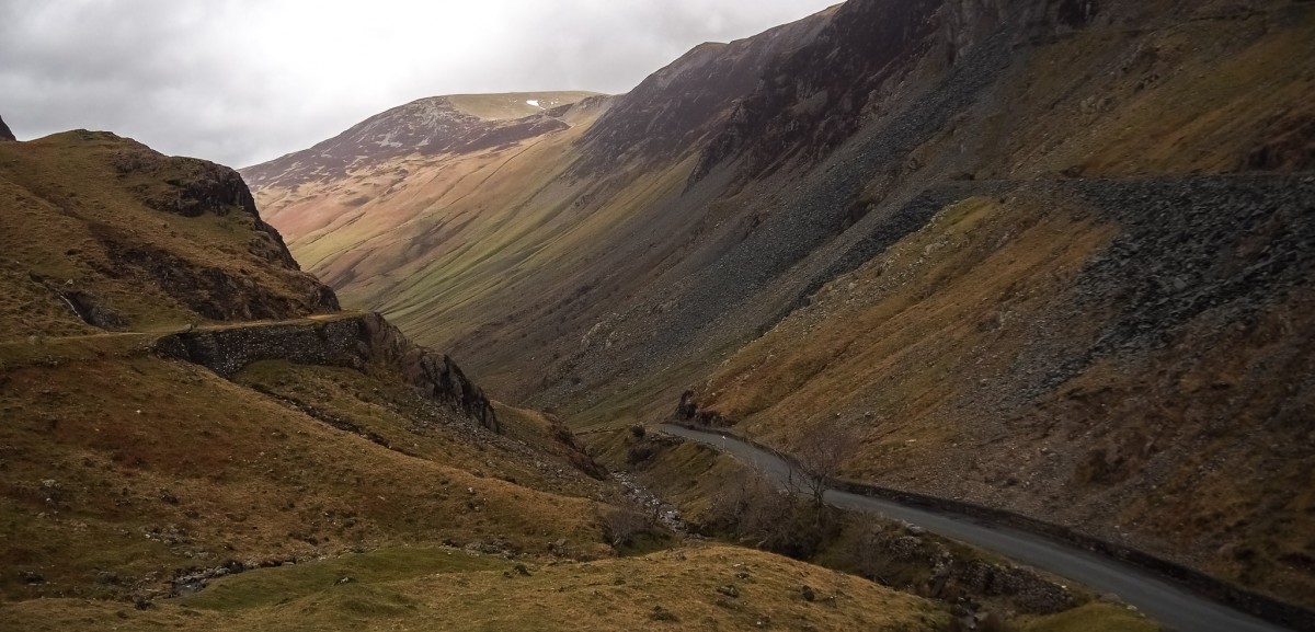 Racing against the brewing rain clouds, we drove through Keswick towards Borrowdale valley. We began the rollercoaster incline to the famous Honister slate mine, stopping only for a hot drink and to admire the views and slate works. Continuing on down the steep Honister mountain pass, I was in awe of the dramatic landscape and its similarity to that of the Scottish Highlands. We drove in parallel to Buttermere Lake, dodging the resident sheep and anticipating the impending downpour. The landscape was soon draped beneath a cloak of mist; we’d had our ration of winter scenery for one day.