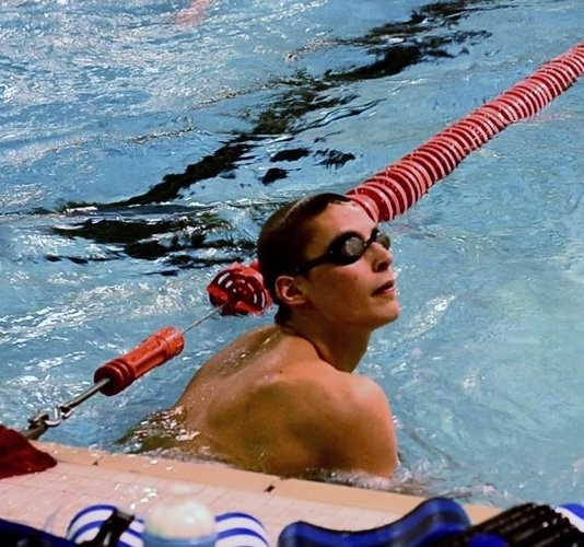 He looks right at me, smiles. Eyebrows go up. “Well, I do intend to swim the race of my life.”