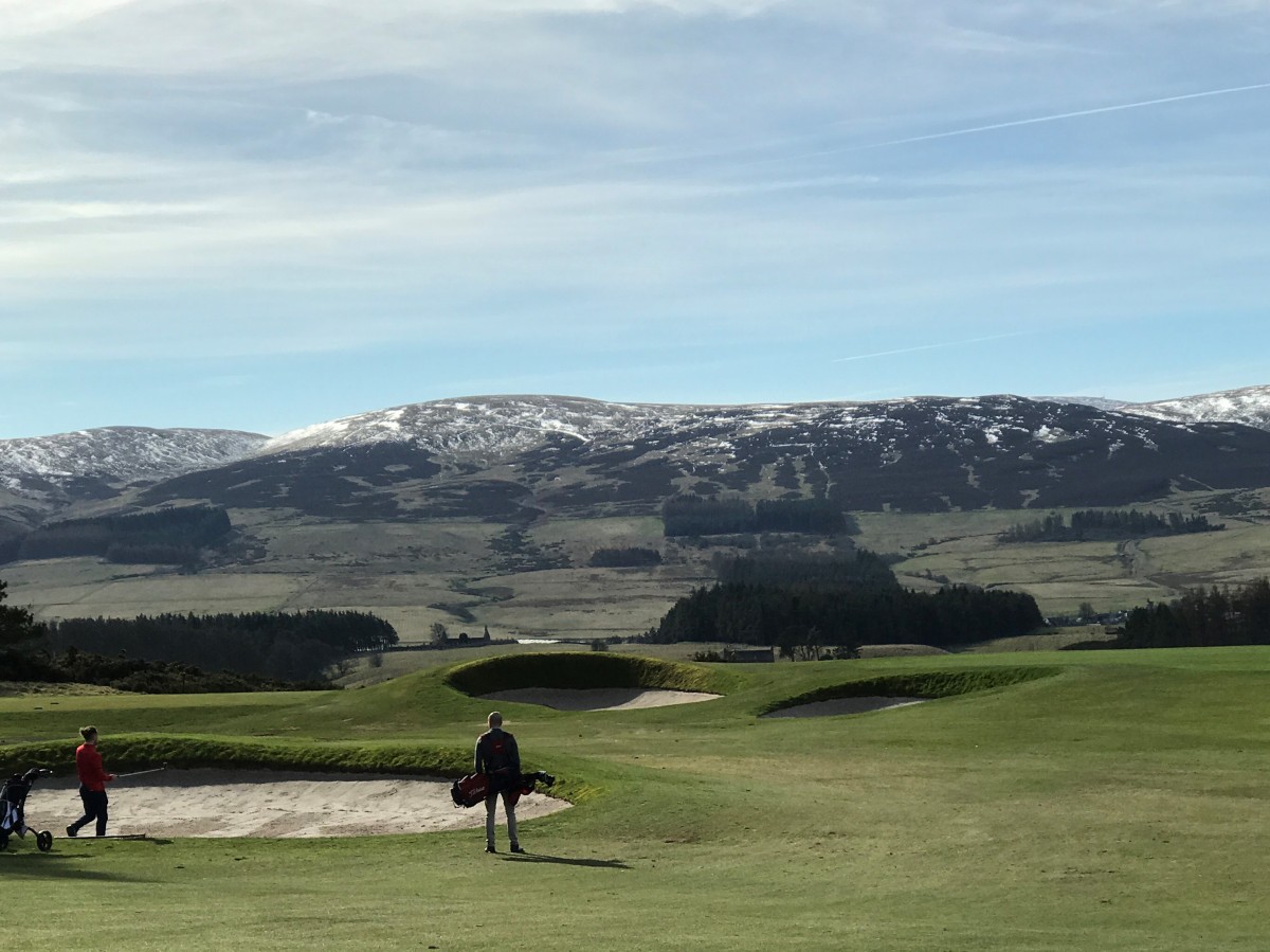 On the 18th tee, Stevie boomed his drive 250 yards down the fairway to join my ball and we looked like the perfect Ryder Cup pairing. He doesn’t often get the chance to come back home but was enjoying a day out in the Perthshire sunshine.