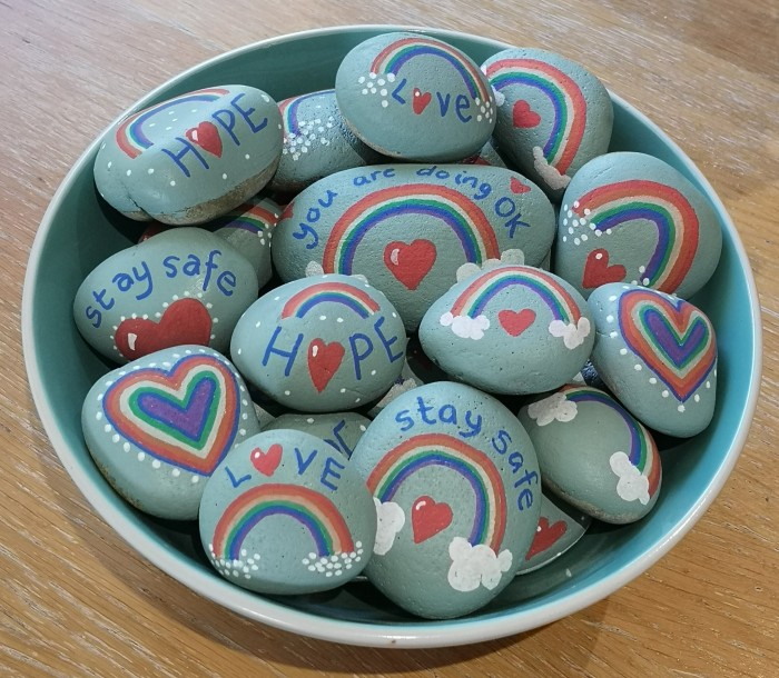 “I also love how keen people have been get involved and contribute ideas. We’ve seen 26 rainbow stones hidden as part of the 2.6 fundraising challenge, and the latest project is to start a Lockdown Caterpillar of stones along the railings at RDM School. There’s lots of enthusiasm to see how long we can make it!”