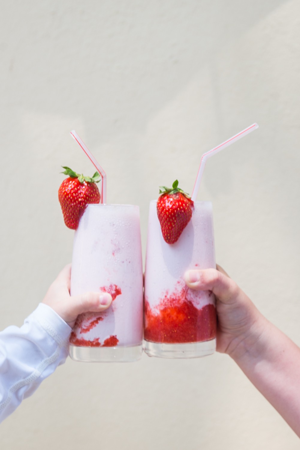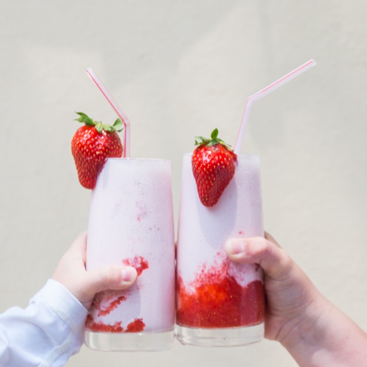 This recipe is a perfect way to enjoy those slightly softer strawberries. Get the kids involved and shake up a sweet strawberry storm – so much better than the dreaded powder and a million miles from a fastfood thickshake. The vanilla gives it a candy flavoured kick and takes it from being a quick drink to a real treat.