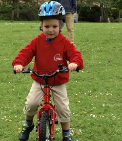 Alice took James to Small Fry Cycles to learn how to ride a bicycle at their Small Fry Cycles event to teach young children how to ride a bike.