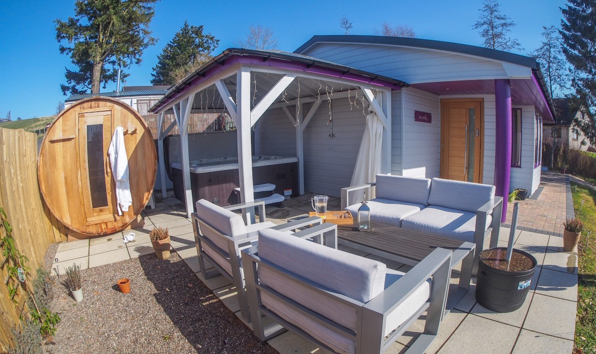 The glorious sunshine, tweeting birds and one hell of a bella vista, were the optimum ingredients in my al fresco relaxation. Mountain tops peeked over the hilly horizon, while the cool breeze circulated my face as I soaked in the hot tub. Emerging from the sauna, the fresh air invirgorated me from head to toe. I was living the Sunday dream. Jane would’ve had some trouble removing me from the hot tub, had she not tempted me inside with a back and face massage. Sinking into the bed in the candlelit treatment room, this final dose of pampering was the supersized cherry on the cake. Afterwards we sat outside sipping fruit tea in the sunshine. Safe to say I had recovered from my bungee jump the previous day. No more nightmares for me.