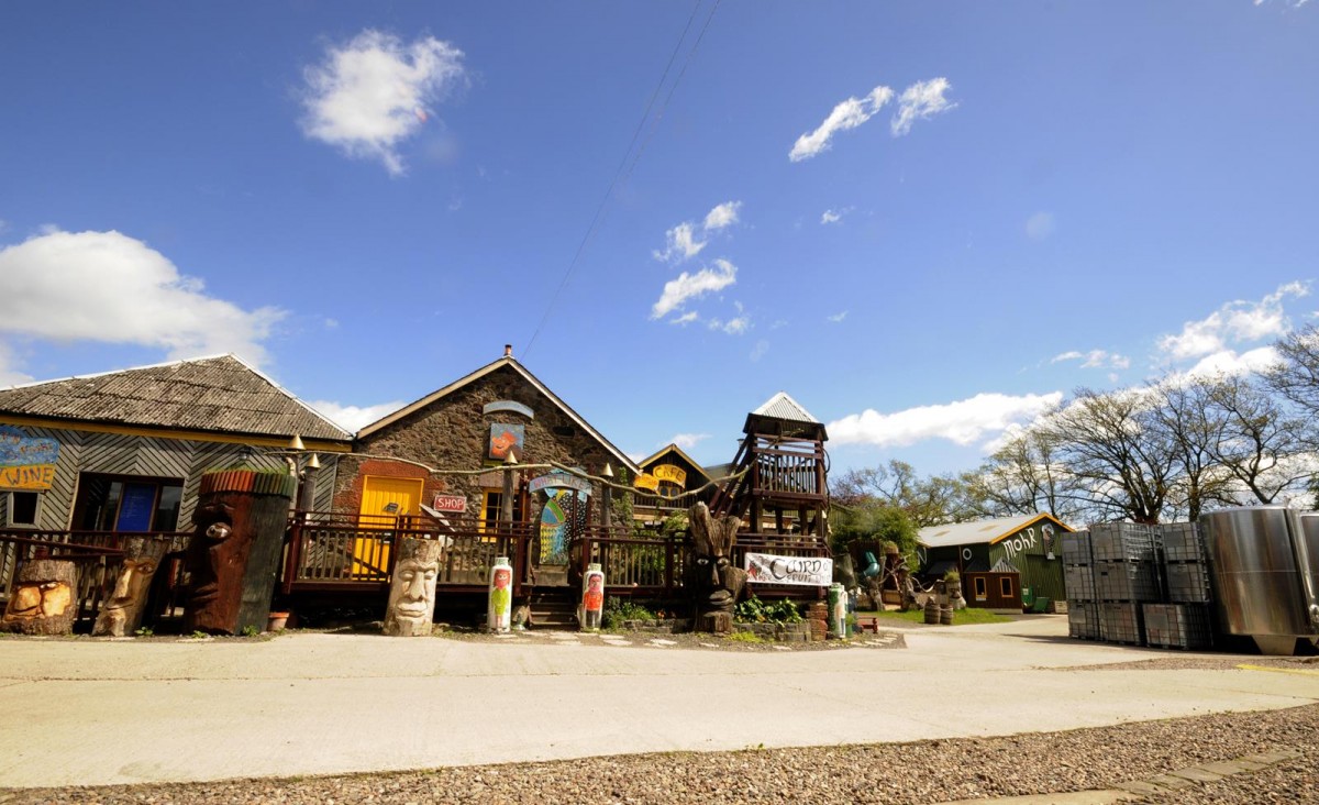 Cairn O’Mohr was still relatively new when I necked the bottle of strawberry, having been set up in 1987.  It sits among the fields and the hedge-lined country roads of the Carse of Gowrie down by Errol and now consists of the winery, the AliBob tea-room and several of Ron’s Big Wooden heids.  You can enjoy a tour and find out how two people who met playing poker on a river boat in the steaming mosquito infested mangroves of the Panamanian jungle came to be living in Perthshire making wine from berries and leaves.