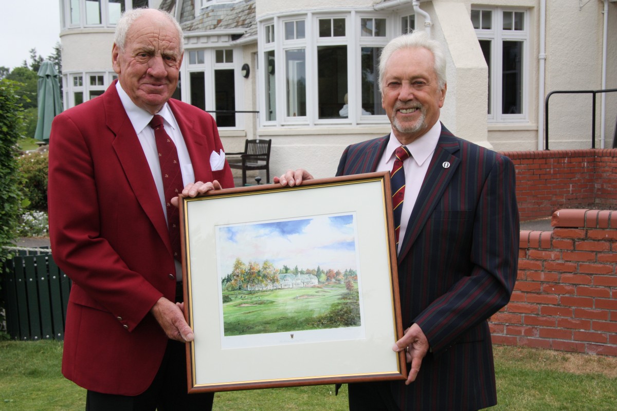 70 years later, he’s still playing there although he doesn’t have to endure the six-mile cycle these days! The retired dairy farmer has been a loyal member at Blairgowrie and is also a former captain of the club. The current captain, Brian Wesencraft, presented Tom with a print of the striking Rosemount clubhouse to mark his special anniversary and paid tribute to the long-time member.