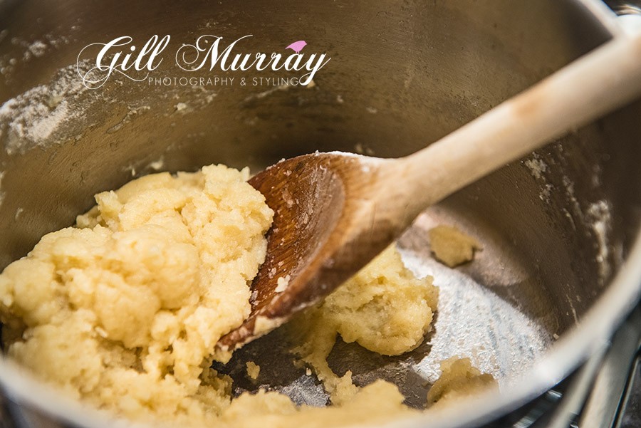 For my choux pastry I’ve used a Michel Roux recipe I’ve been using for years and this gives the perfect quantity too. For my own variation on these gougeres I’ve added vegetarian haggis but you can use regular haggis if you’d prefer.