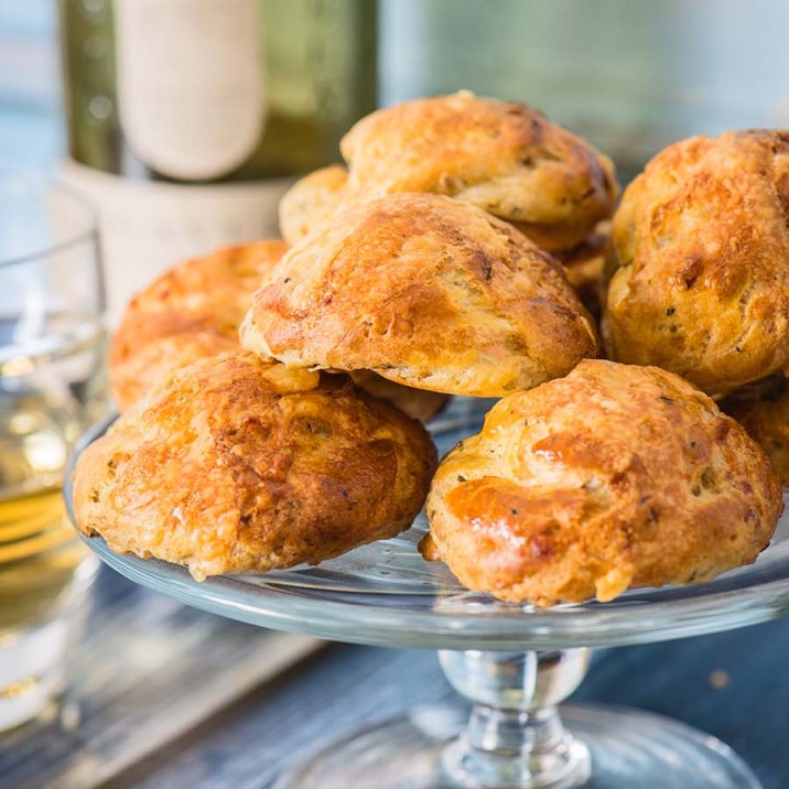 Traditionally gougeres are small cheese puff bites that originate from Burgundy in France. They are often served during wine tastings in the cellars of Burgundy to accompany wine but perfect to be served with an aperitif.