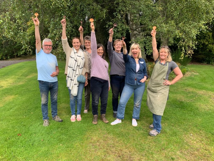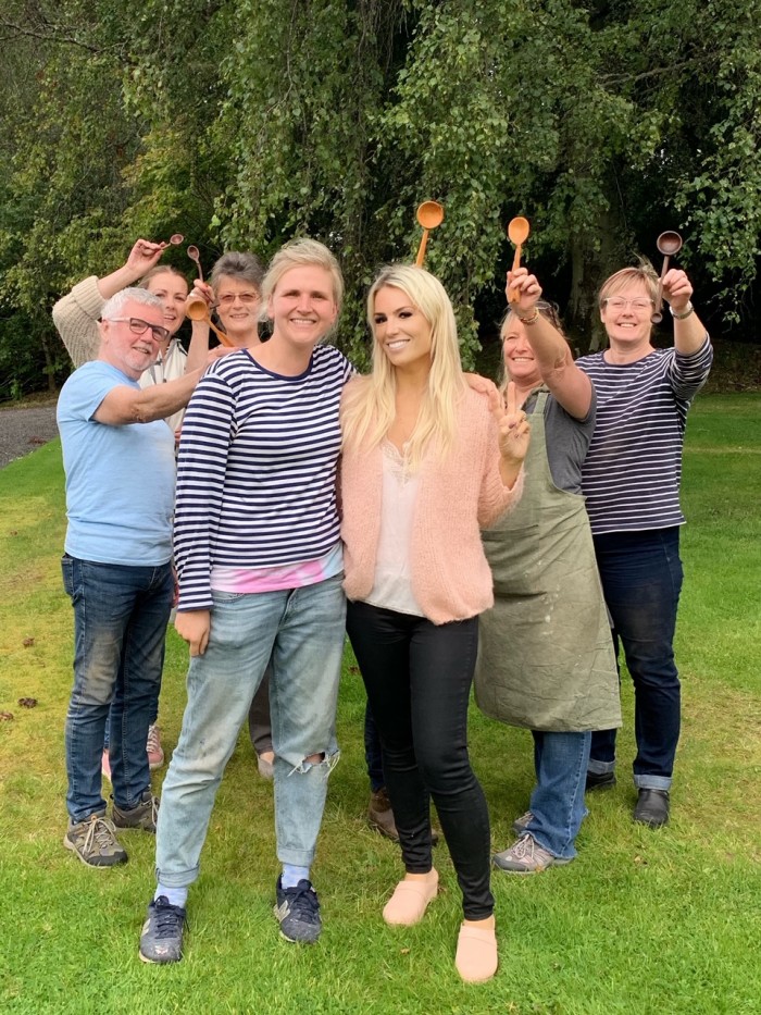 Scooping the bowl of your spoon is trickier than you’d think; I’ve skint my knuckles and been plastered by Louise in the first 10 minutes. However, it is also strangely satisfying and ever so relaxing: you eventually get into rhythm and with Louise circling our group of six with all the gentle encouragement and fun guidance of a cub pack Akela, I am soon elated with my wee scoop and can’t wait to get it into the bandsaw and watch my handle take shape.