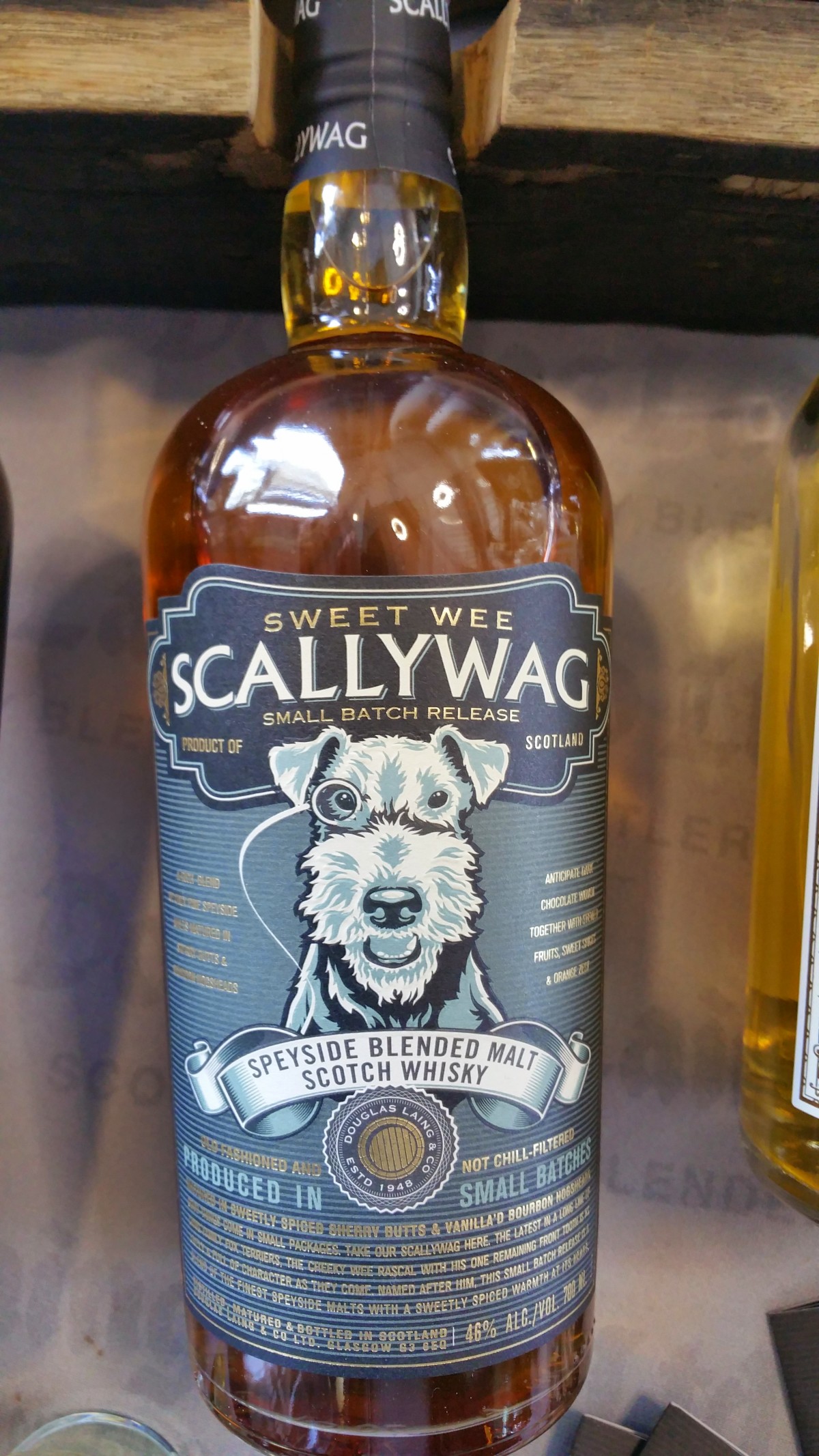One thing that really struck us was the bottle design and labelling and how effective they were at attracting our attention. Whisky’s like Big Peat and Scallywag (with a cute wee dog on the bottle) really caught our eye.