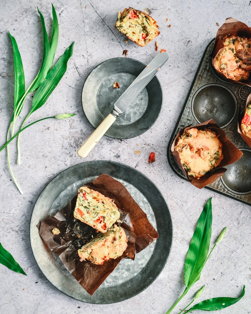 Taking advantage of this wild and whiffy seasonal gem, I've mixed it up with parmesan, cheddar and added some sweetness with chopped red pepper. If you love a savoury scone you are going to be a fan of these delicious cheesy, garlicky muffins, they make a filling snack and can be used as a side to a salad or big bowl of homemade spring soup!