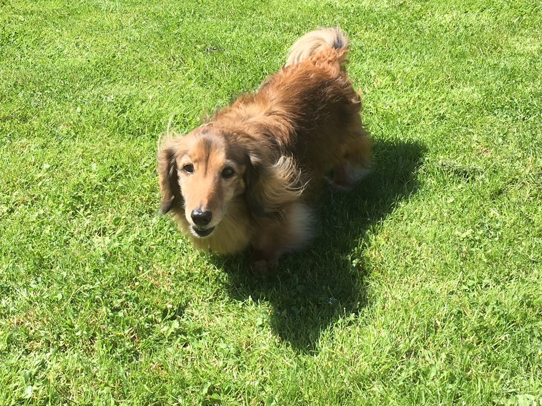 Gillian on the other hand works on some nights until 10pm. Gillian does what we call the 'finishing' - doing all the print and embroidery onto the clothing. I do all the preparation for her while dealing with most of the customers and suppliers. I also print the banners, canvas prints and posters on our huge printing machine. We also have our own mascot, Bailey, a long-haired Dachshund, who we look after for a friend during the working day and he always likes to give our customers a 'friendly' welcome!