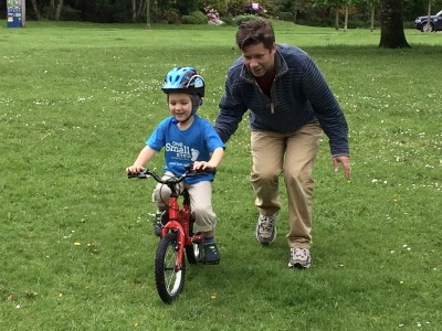 Alice took James to Small Fry Cycles to learn how to ride a bicycle at their Sma