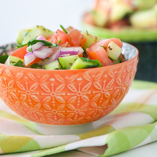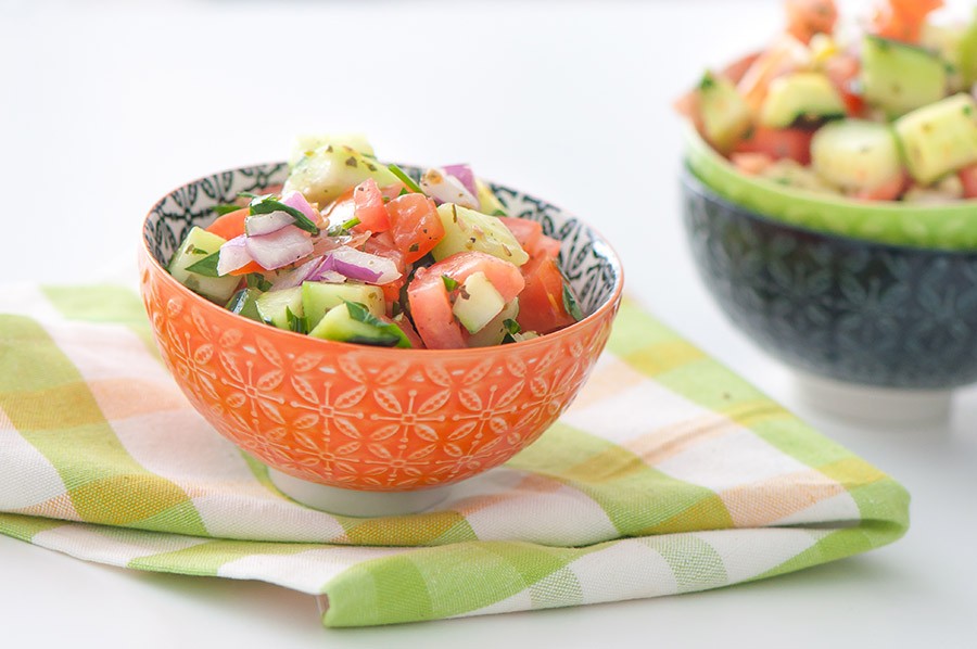 This fresh Mediterranean salad is the perfect salad dish for any time of the year. The salad gets a wallop of flavour from the garlic and fresh mint and is best served straight after mixing. Crunchy cucumber is one of my favourite ingredients in a salad and this is a great salad recipe when you're bored of lettuce. Again I love versatility in dishes and you can munch on this salad on its own for a healthy lunch with pita bread or serve on the side with your main evening meal alongside some grilled chicken, lamb or fish.